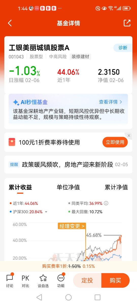 $工银美丽城镇股票A(001043)$基金深度布局地产产业链,建筑材料行业占比38.44%,轻工制造占比14.02%,受益于新型城镇化主题。当前,房地产板块估值处于历史低位,尽管行业盈利修复尚需时日,但在政策催化下,市场悲观预期已有所改善,板块底部企稳趋势逐渐明晰。对于关注消费建材为代表的地产链优质标的投资机遇的投资者,或可考虑逢低、分批布局$工银美丽城镇股票A(001043)$。