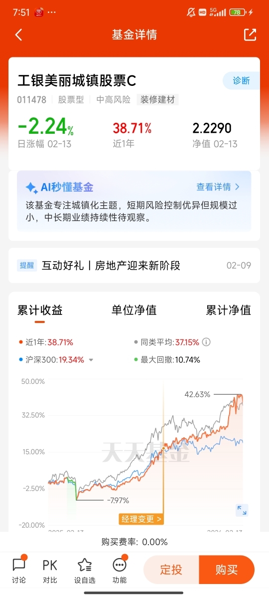 在我看来,这只基金契合当前地产转型方向,避开高风险房企,聚焦产业链稳健环节,政策友好度高、长期逻辑通顺。但也要清醒认识到,地产链仍处于修复期,销售、开工、信心的恢复需要时间,基金净值会随板块波动,短期可能出现较大起伏,不适合追求保本、低风险的投资者。