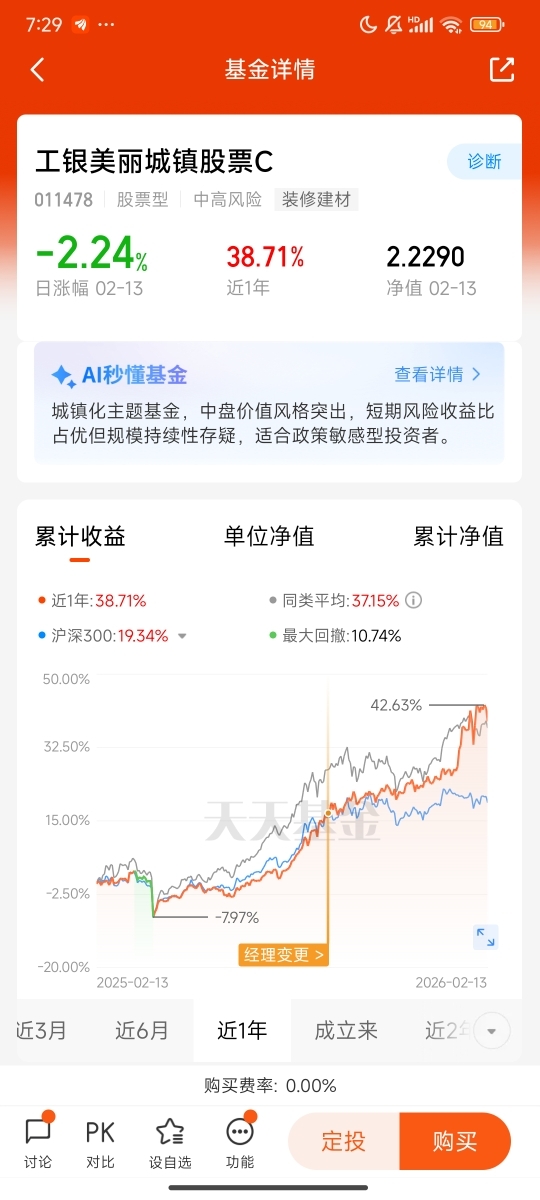 基于这样的判断,我持续关注工银美丽城镇股票A/C所代表的投资方向。这一方向紧紧围绕新型城镇化展开,聚焦城镇建设、生态文明、配套服务与消费升级等领域,布局逻辑与当前政策导向、产业趋势高度契合。它没有局限于传统开发环节,而是深度覆盖产业链上具备成长属性的优质资产,分享行业转型与城镇化推进的长期红利,也与我追求稳健、聚焦长期的思路相匹配。