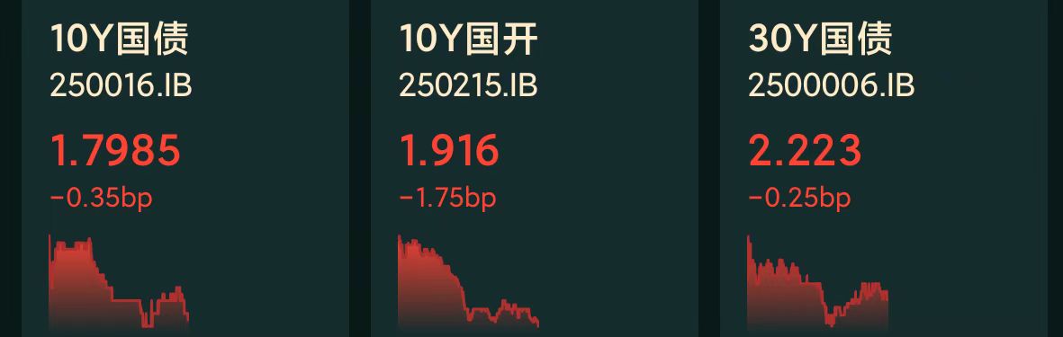 十年期国债收益率:1.7985%,-0.35BP(国债收益率越跌,债市越涨)