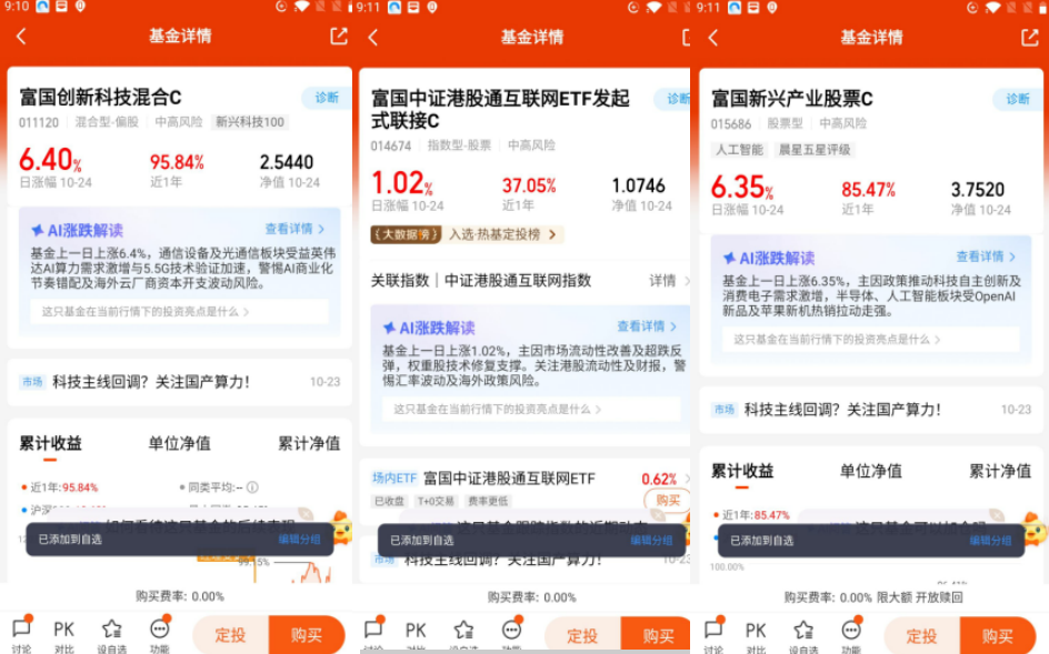 同时,我也会关注富国新兴产业股票C基金(OTCFUND|015686)。这两只基金的投资策略和方向基本一致,但是C类份额的费率结构更适合短期持有,可以作为灵活调仓的工具。