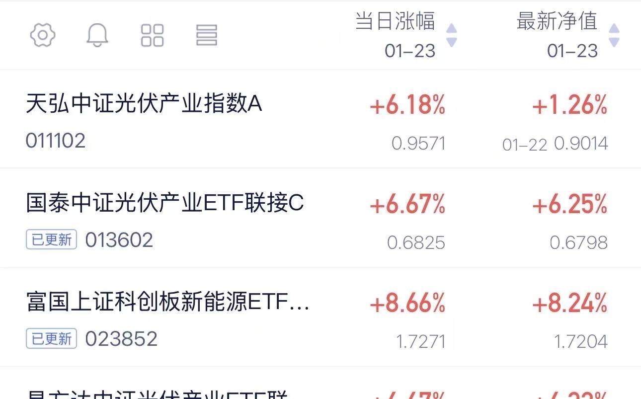 同样是光伏基金,富国上证新能源光伏基金还是挺不错的,今天8个点仓位更集中一些。