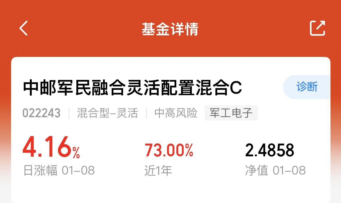 我要求不高,牛市行情下能分一杯羹就很满足了,昨天$中邮军民融合灵活配置混合C$吃