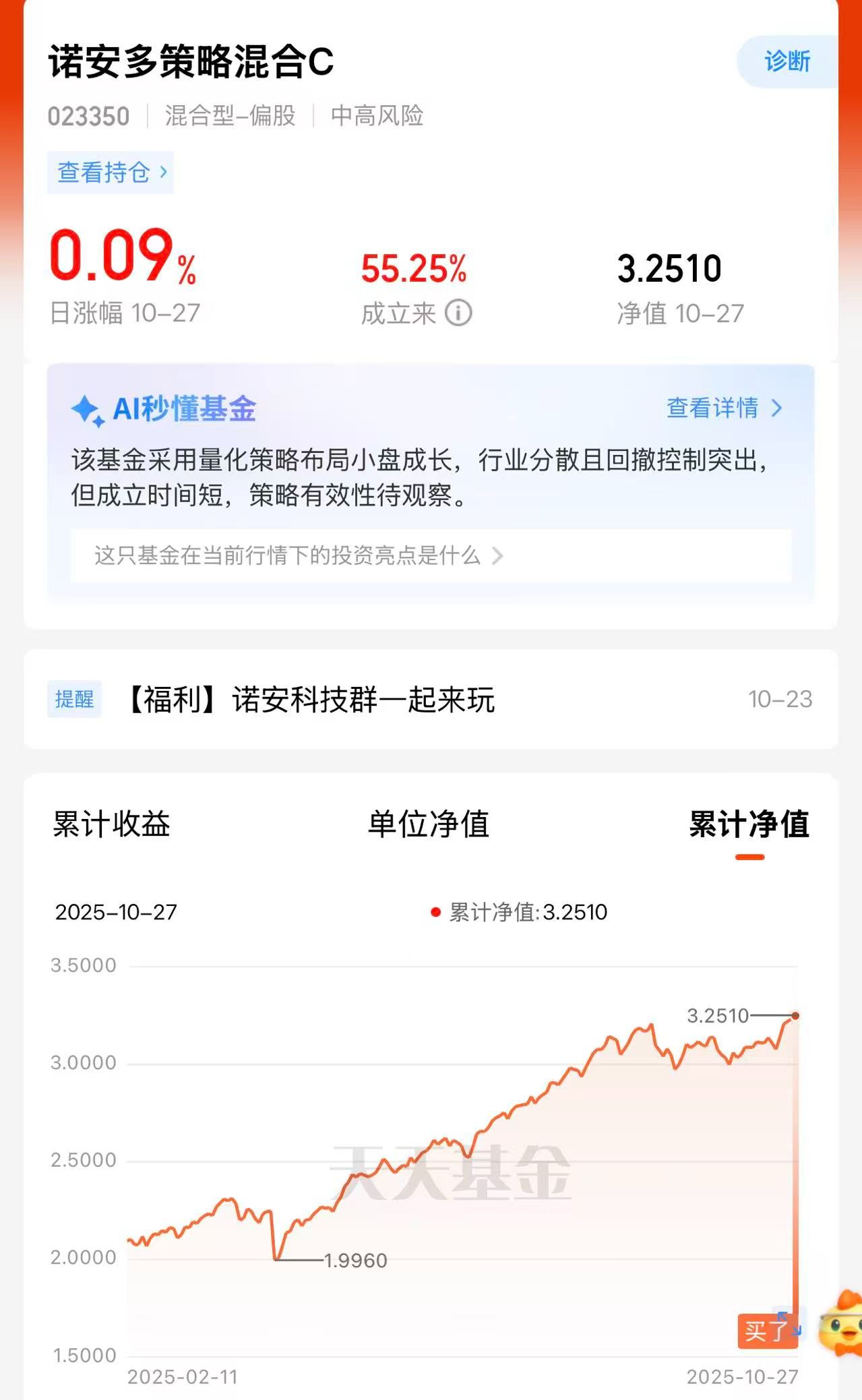 诺安多策略混合C(023350)又稳稳地站上了新的高点!对比大盘的纠结走势,它独立向上的样子真帅。看来它这套在微盘股里做增强的策略,确实经得起考验。不管市场风格怎么变,它总能找到赚钱的机会,继续持有,期待下一个新高。#A股盘中突破4000点!下个目标位在哪?#