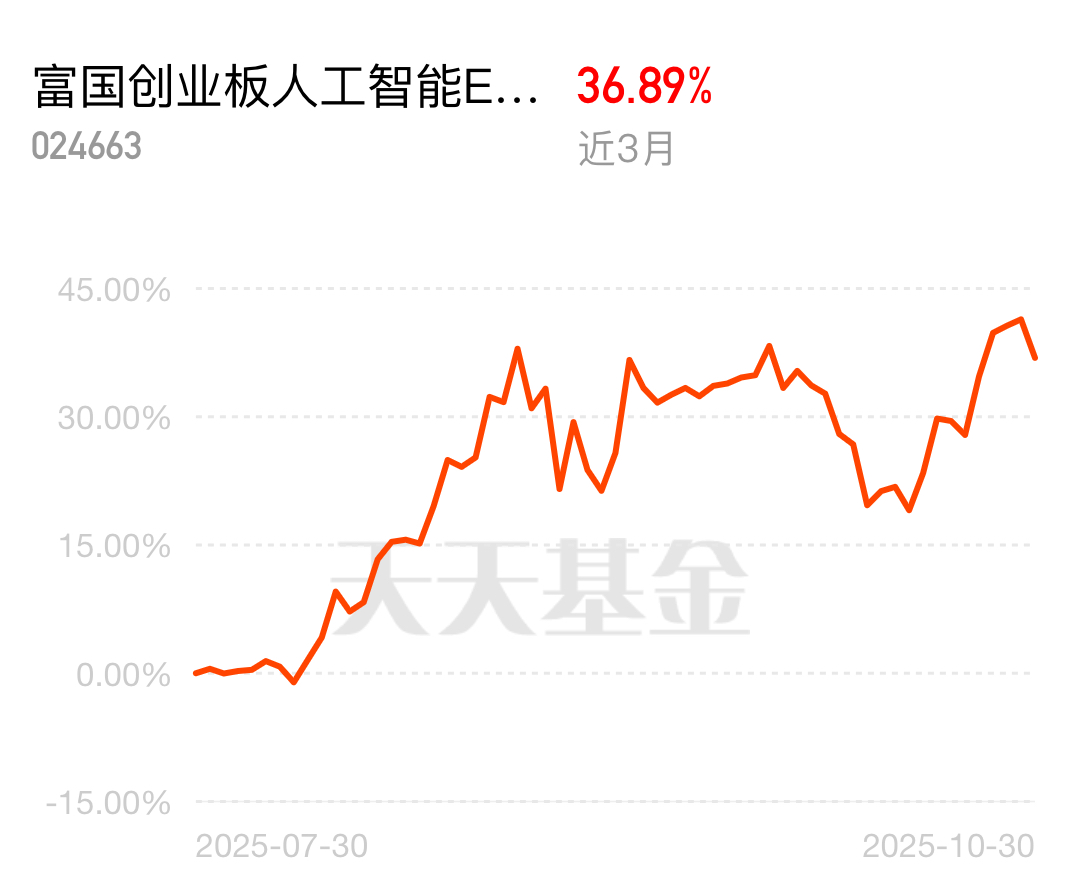 持仓前海开源国家比较优势A的同时,我也配了富国创业板人工智能ETF联接C近6个月涨了43%,跑赢大多数同类;最近一周又涨7.1%,这赛道确实能打!它聚焦科技、高端制造、TMT这些方向,成长性看得见:指数成分公司这个季度净利猛增68%,营收也涨超5%。估值还在近5年22%分位,便宜有底气。我拿它当成长仓位压舱,心里踏实多了。
