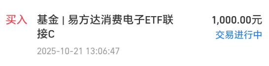 今天我买入$易方达消费电子ETF联接C(OTCFUND|018897)$1000块钱。
