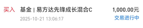 今天我买入$易方达先锋成长混合C(OTCFUND|011892)$1000块钱。