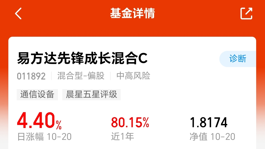 这个基金主要聚焦CPO等高成长性赛道,深入挖掘CPO产业链机会,昨天行情反弹时它大涨4.4%,近1年涨80.15%,我认为是很棒的。趁着行情重启反弹,今天我加仓提高仓位。