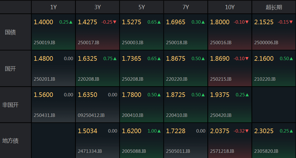 盘面上,10年国债活跃券小幅下行0.3bp,围绕1.8上下波动,变化不大。
