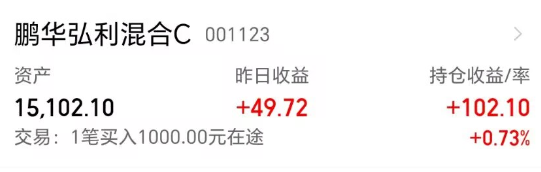 市场变化挺快,早盘的时候低开不少,现在指数率先翻红,要捕捉行情比较考验节奏,我布局像鹏华弘利这样的固收+参与行情比较稳心态。