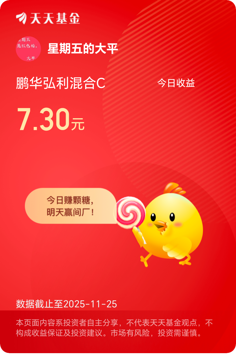 A股今天再次反弹,实现了2连涨。上证和创业板指数的涨幅还是很可观的,债市今天跟股市跷跷板了,尾盘回落了不少,不过$鹏华弘利混合C$ 它是固收+,综合下来今天的收蛋还是非常喜人的。