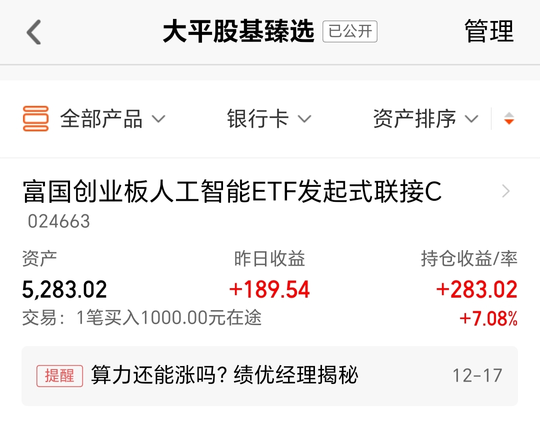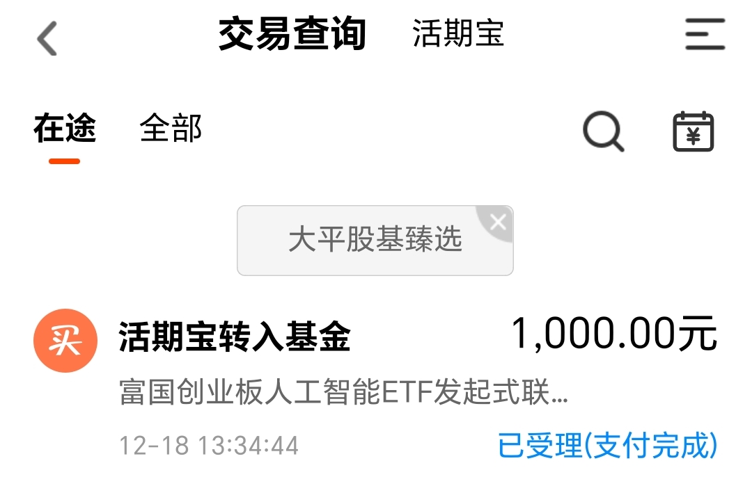 今天我买入$富国创业板人工智能ETF发起式联接C(OTCFUND|024663)$1000块钱。