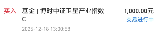 今天我买入$博时中证卫星产业指数C(OTCFUND|024749)$1000块钱。
