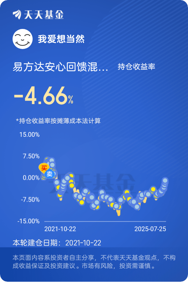 看到好多人这个基金解套了,我咋办呢?偏债基金,确实不好玩呢$易方达安心回馈混合A