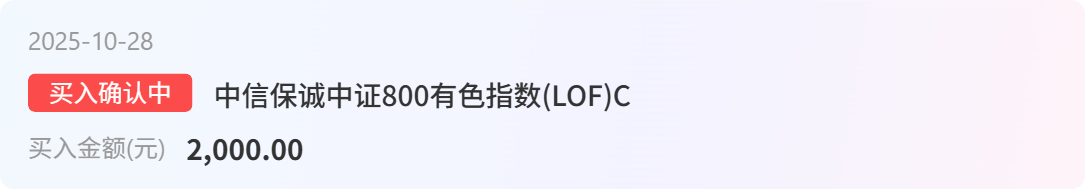 $中信保诚中证800有色指数(LOF)C(OTCFUND|013081)$加仓2000元。