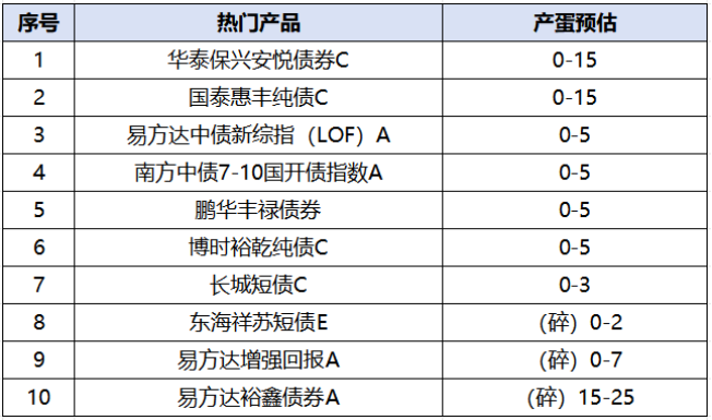热门产品产蛋预估:(根据16:00行情预测,仅供参考,以实际产蛋为准)