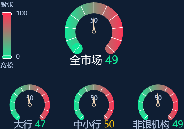 五、资金面情绪指数:全市场49 资金面维稳 (0-100紧张度递增,50为均衡,超过50反映资金紧张)