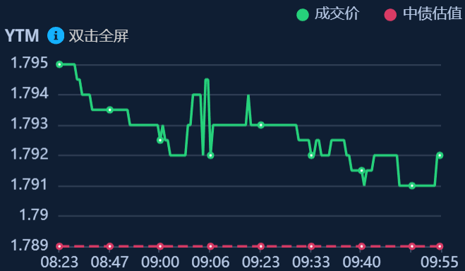 二、十年期国债收益率:1.792 0.003%(国债收益率越涨,债市越跌,两者反向关系)