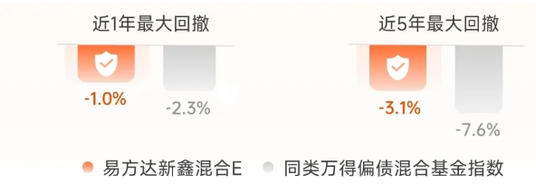 回撤方面,近1年最大回撤-1.0%,同期偏债混合基金指数为-2.3%;近5年最大回撤为-3.1%,同期同类万得偏债混合基金指数回撤为-7.6%,显著偏债混合指数。