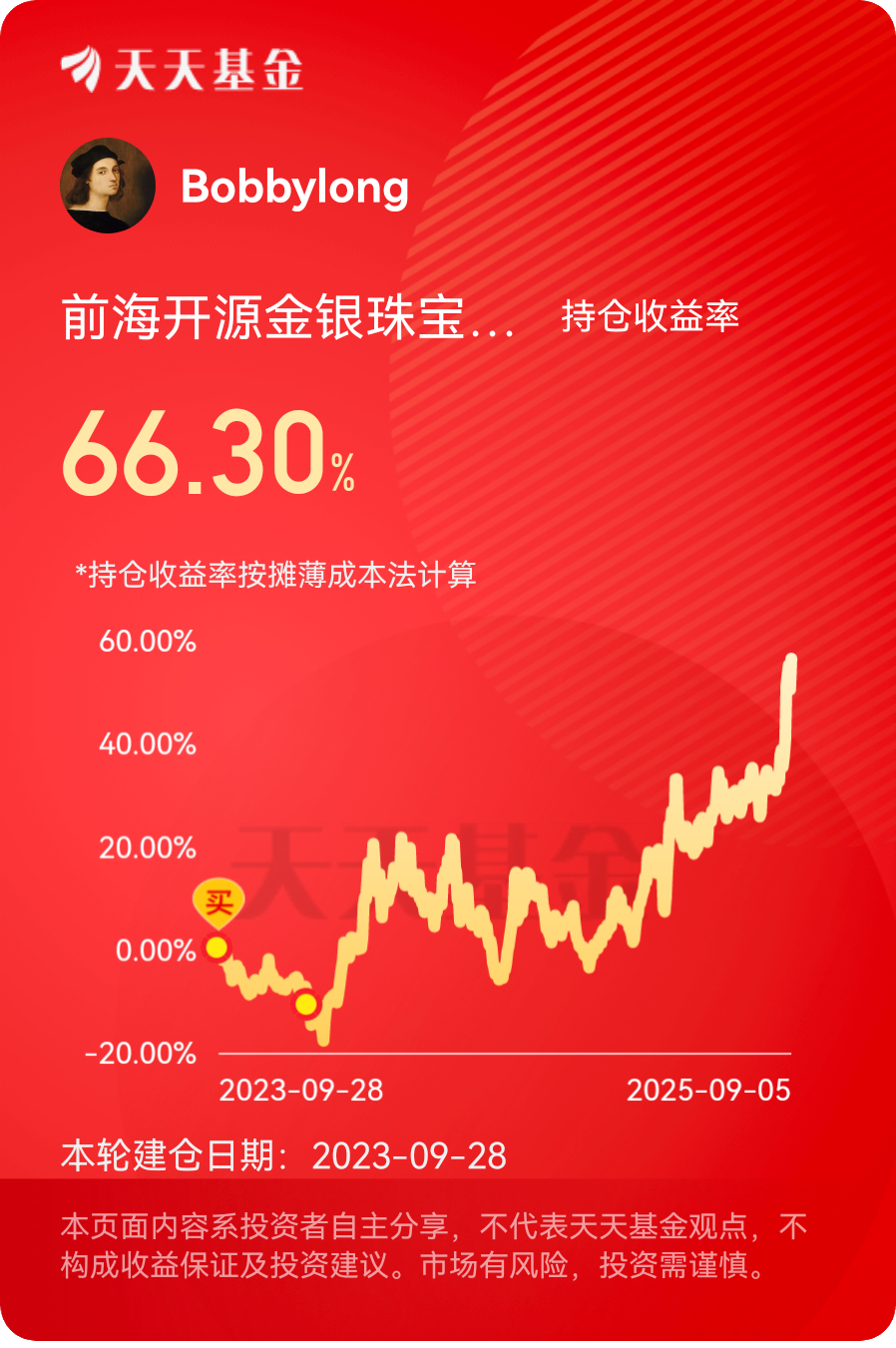 今年到现在金价已经飙升 37% 了,要知道 2024 年它就涨了 27%。能一路涨这么猛,主要是受不少因素推动 —— 美元走软、各国央行在买黄金,还有货币政策放宽,再加上地缘局势和经济方面的不确定因素也在增多。$前海开源金银珠宝混合A$ #晒收益#