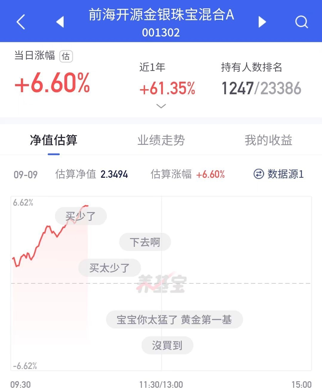 黄金股爆拉啊,涨到第一去了。终于等到你,还好我没放弃$前海开源金银珠宝混合C$