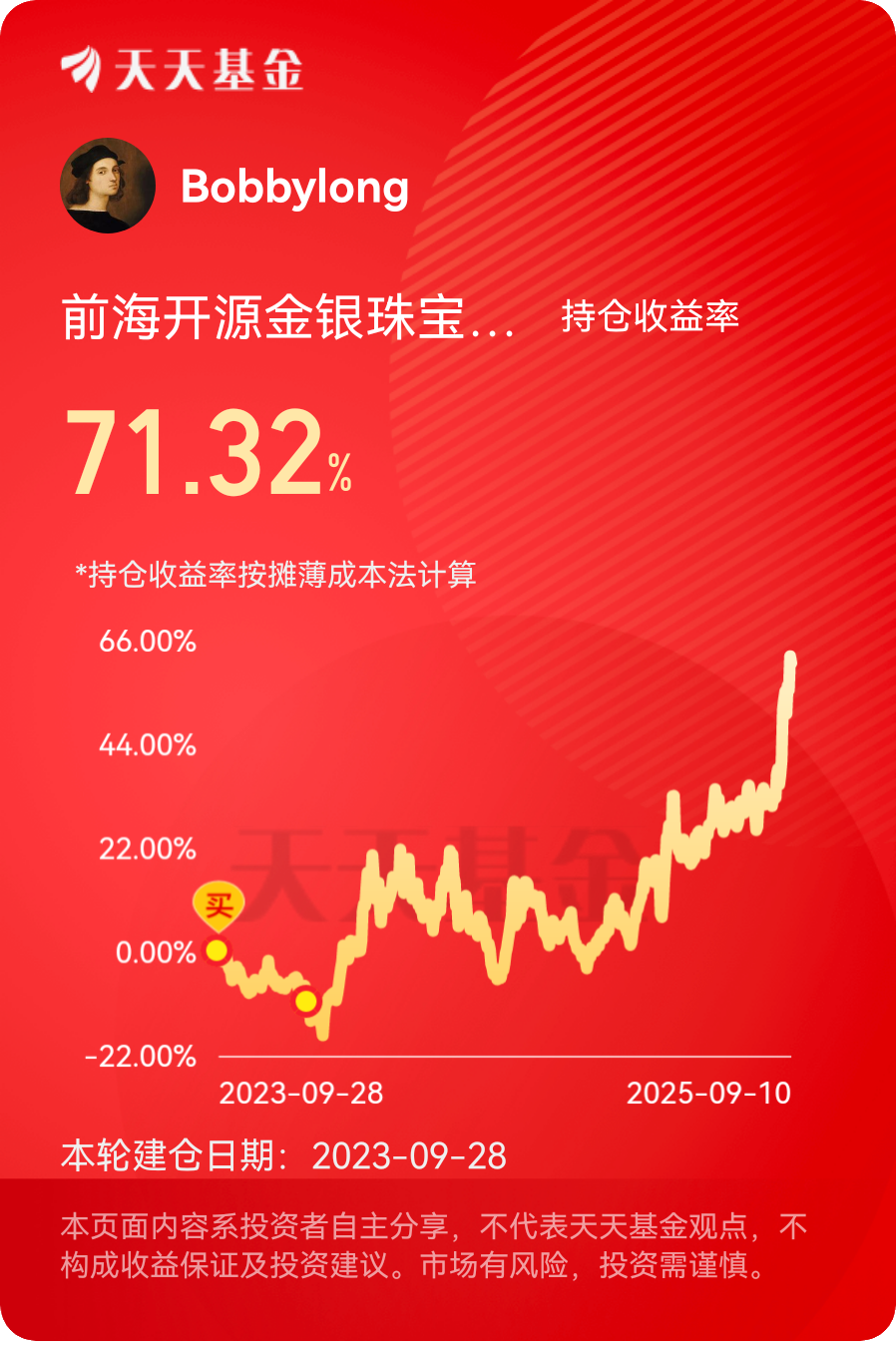 9月11号亚市早盘,现货黄金小幅震荡上涨,现在大概在3545美元左右交易。前一天(9月10号)收在3640.44美元,涨了约0.4%,周二还创下3674美元的历史新高。今年到现在金价已涨超39%,目前主要因为美国PPI疲软、美联储可能降息,加上地缘局势紧张,央行囤金等因素,接下来投资者也在等后续CPI数据,等待更多利好信号!$前海开源金银珠宝混合A$ #晒收益#