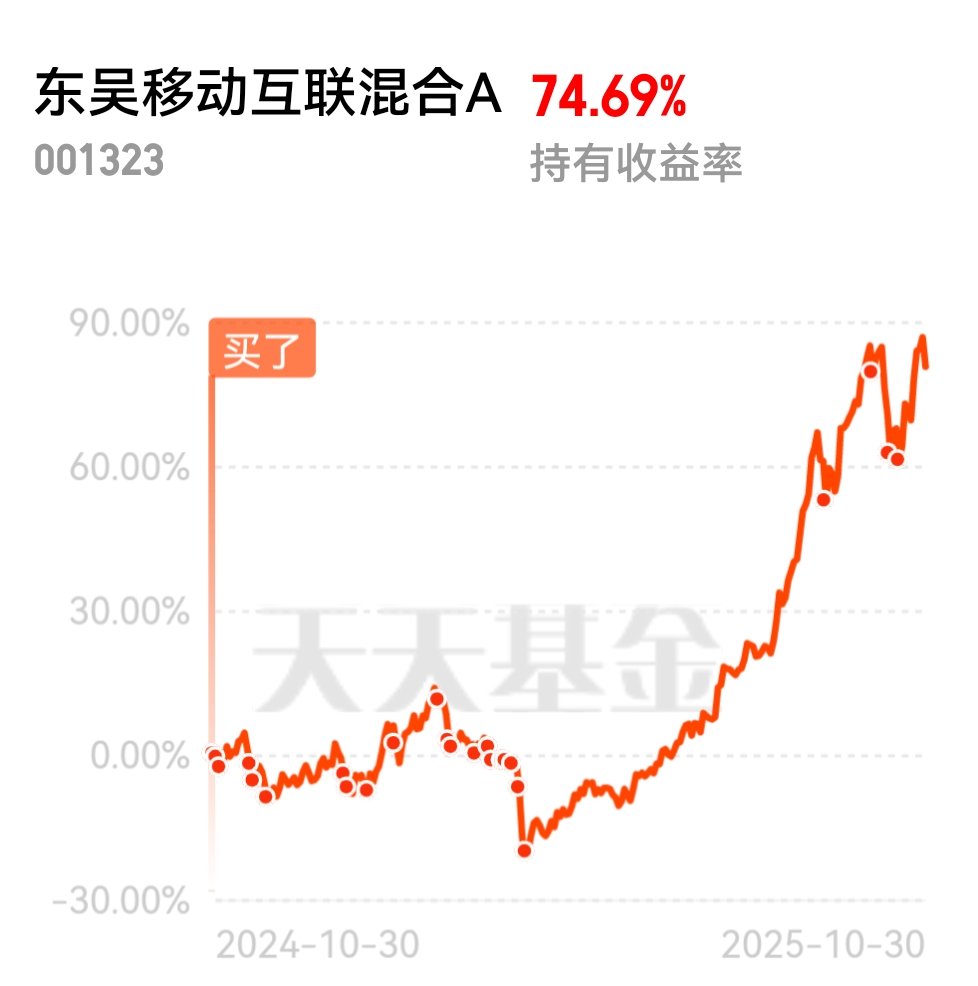 四天连涨近10%,之前两天涨7%!主力认为涨多了该跌了!A股还是炒短线居多,所以不论啥时候都有可能大跌!中美元首会晤的结果是正面的,为何大跌?估摸是利好落地的缘故吧!终上所述,无所畏惧,跌多少都可能涨回来!最低三年不动,随便涨跌!如此宽的护城河,还怕你跌吗?$东吴移动互联混合A$