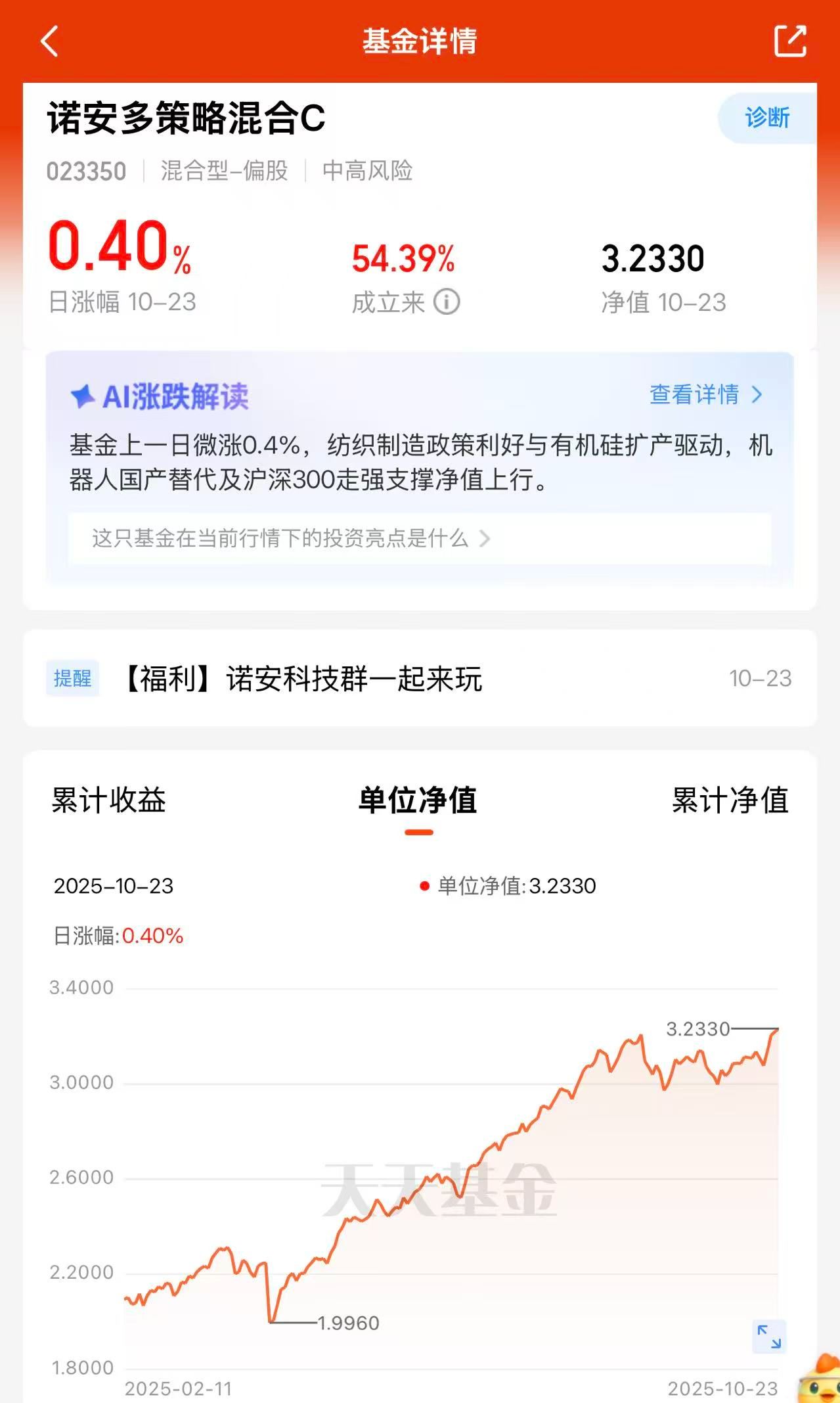 以前市场一跌就心慌,想着要不要割肉。现在持有$诺安多策略混合C(023350)$,心态完全不一样了。因为我知道,基金经理正在利用下跌,把仓位换到更优质的股票上。这就像有个高手在帮你操作,你慌个啥?所以我现在把每一次调整都视为加仓的时机,反正长期来看,它的策略是有效的,净值也在不断新高,终于放心了。#高盛看多A股:慢牛正形成 还有约30%上涨空间#