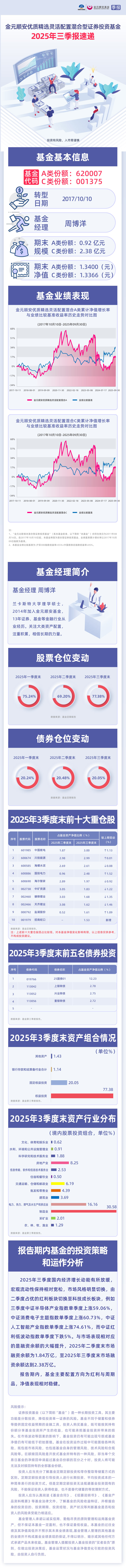 各位投资者大大好呀,金元顺安优质精选2025年三季报新鲜出炉啦,季报披露的信息主要包括基金最新业绩表现、报告期末基金资产组合情况、基金经理最新投资策略和运作分析、前十名股票投资明细和前五名债券投资明细等信息,欢迎点击查看哦。