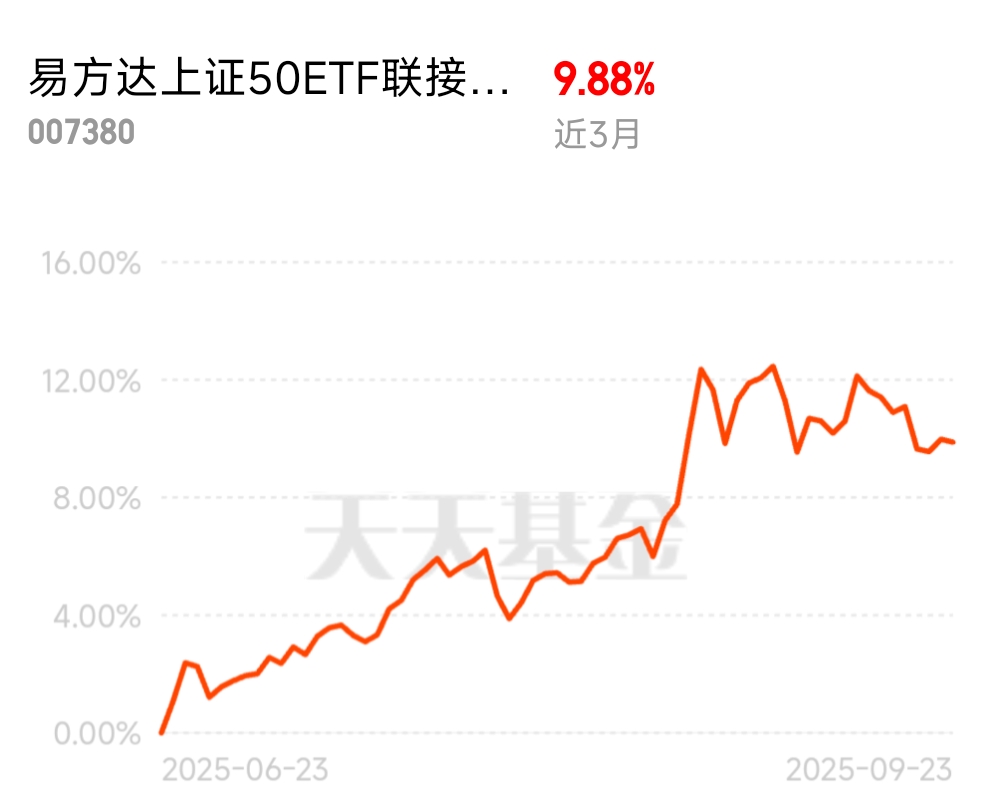 想在收益和风险间找平衡,选了这只价值基。易方达上证50ETF联接C近3月9.88%,大盘风格,均衡配置很合适。