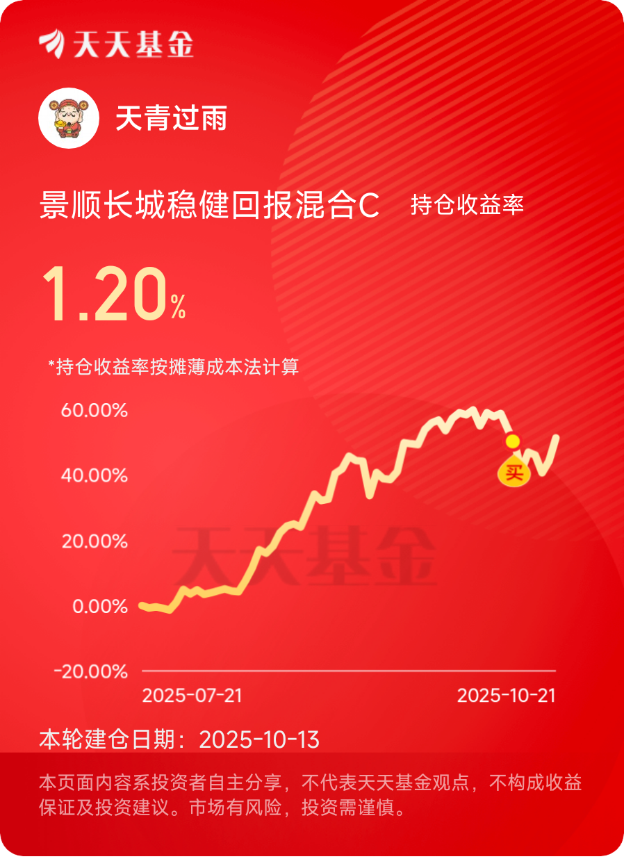 #黄金创12年来最大单日跌幅!什么信号# 稳健回报昨天收涨4.94%,今天继续反弹了,还好前些天有加仓,没错过反弹$景顺长城稳健回报混合C$ #晒收益#