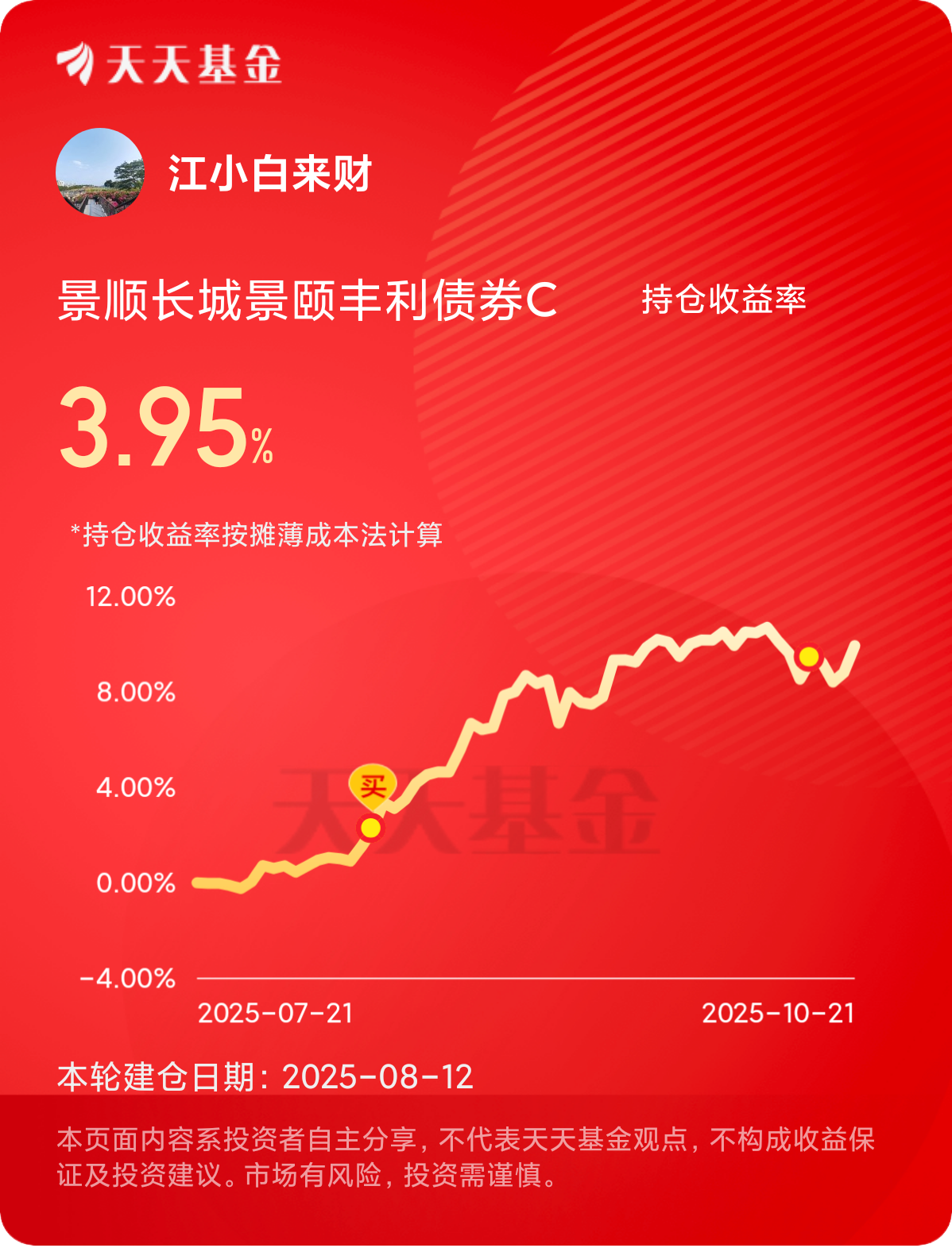 #高盛看多A股:慢牛正形成 还有约30%上涨空间# 江山这个混债$景顺长城景颐丰利债券C$ #晒收益#