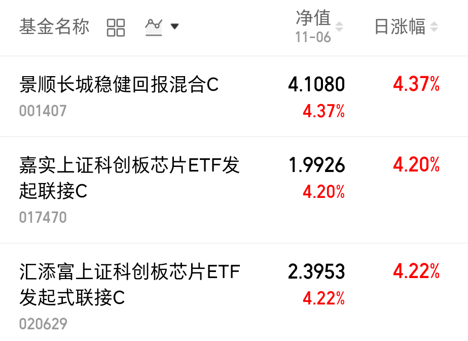 $嘉实上证科创板芯片ETF发起联接C(OTCFUND|017470)$昨天上涨4.2%