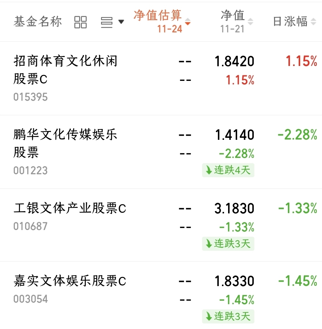 $招商体育文化休闲股票C$ 可以说是金基独立,竟然上涨了1.15%,该基聚焦传媒,计算机板块,表现不错。