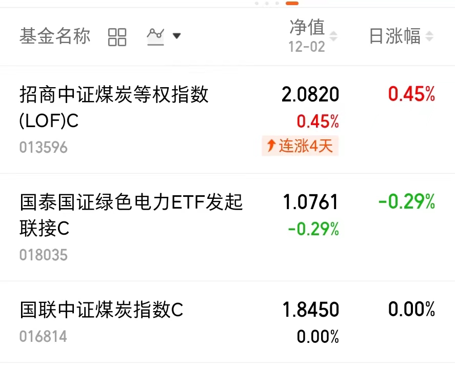 $招商中证煤炭等权指数(LOF)C(OTCFUND|013596)$昨天逆势上涨0.45%