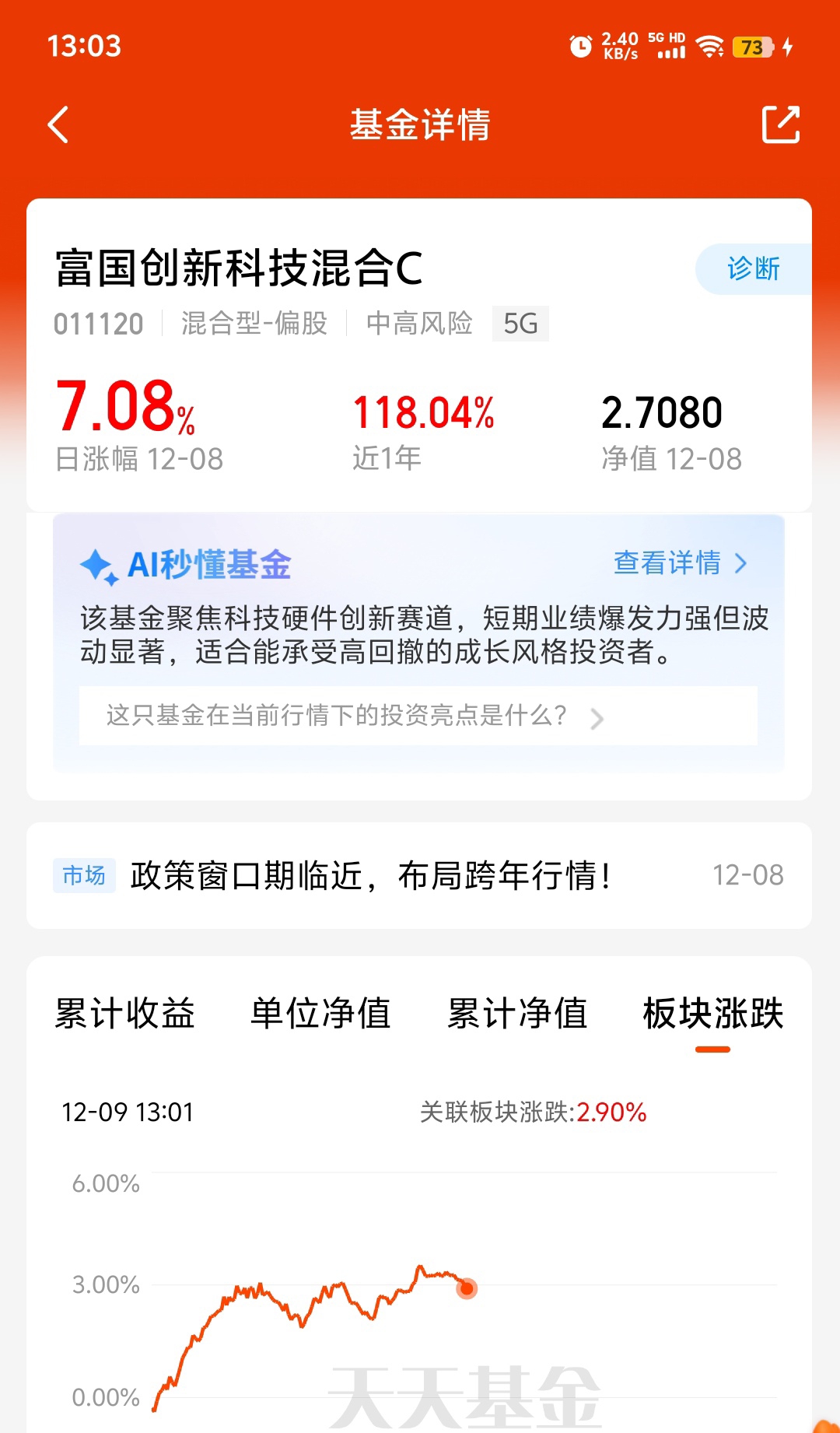 富国创新科技现在估值是3.73%。$景顺长城稳健回报混合C$估值2.42%。