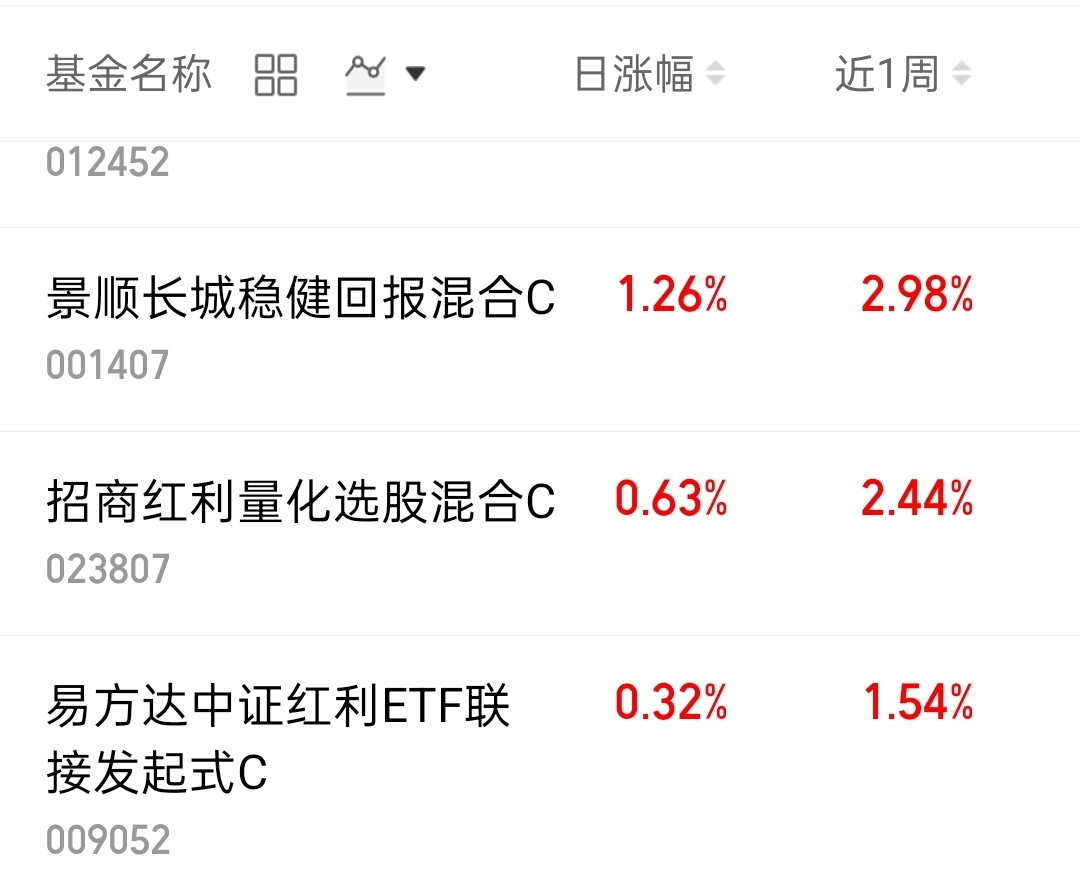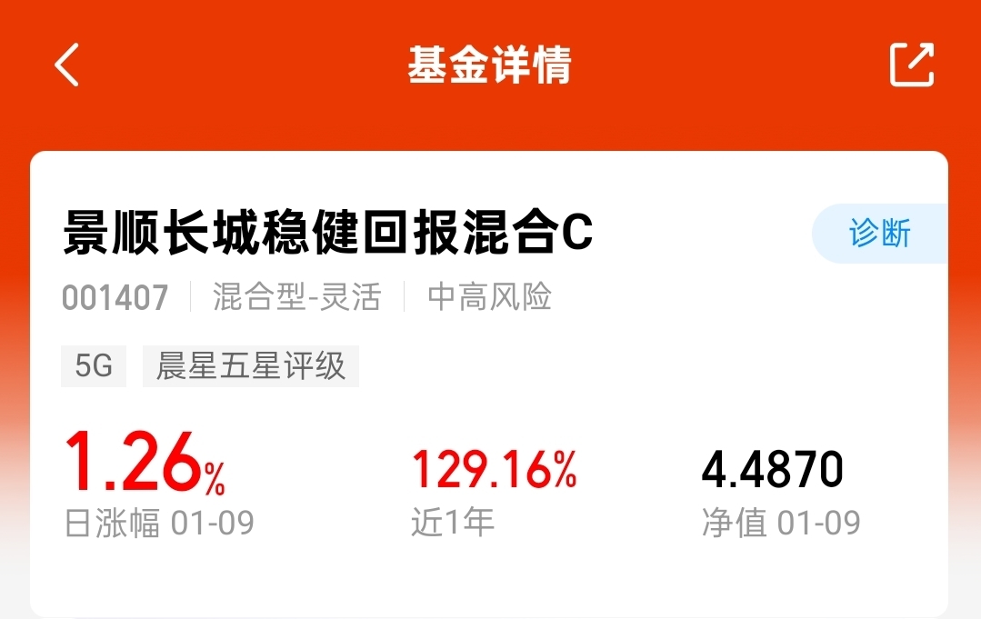 $景顺长城稳健回报混合C$ ,涨1.26%近一年涨超129%