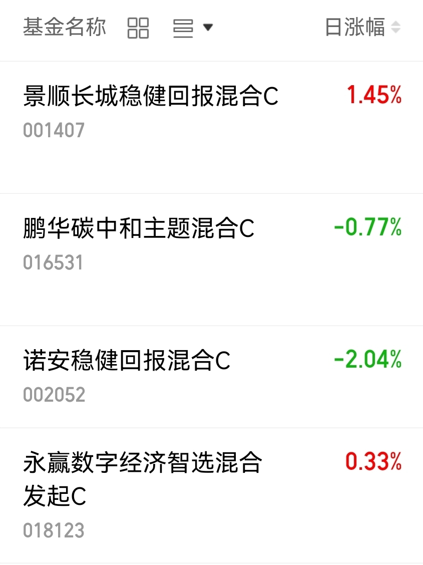 $景顺长城稳健回报混合C$ 昨天涨幅1.45%,今天实时涨幅2.34%,有望三连涨。