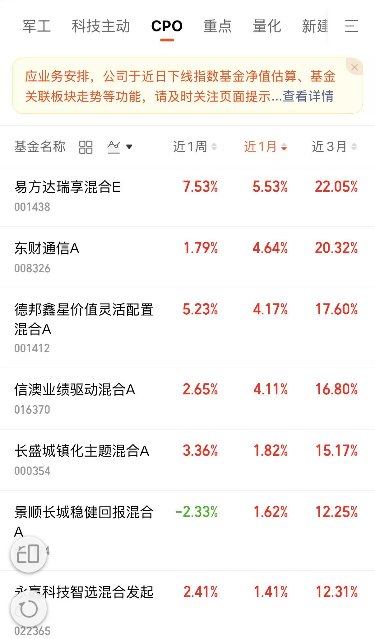 从盘面看还得是科技CPO又大涨,看来行情要轮动了。每次CPO行情来了$易方达瑞享混合E(OTCFUND|001438)$这基都涨的不错