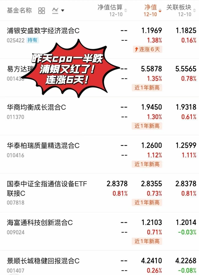 光模块新一轮行情启动!CPO基金浦银安盛数字经济昨涨1.38%超多同类,基金经理深耕通信,跟紧CPO趋势$浦银安盛数字经济混合C$