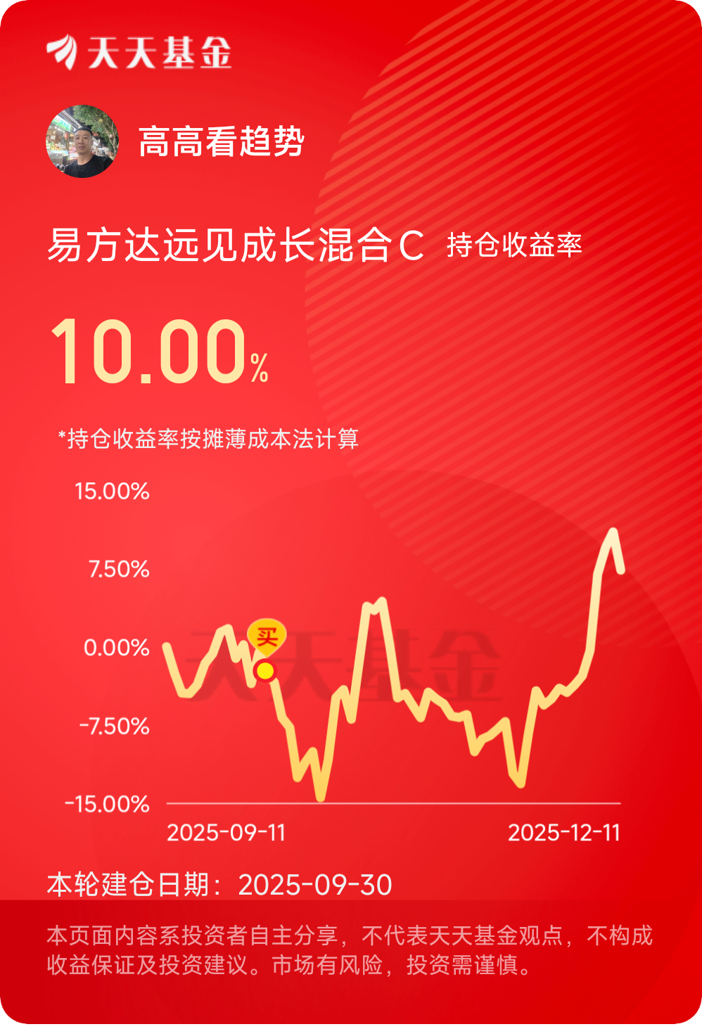 三大指数今天探底回升。科技表现的还是比较好。#晒收益# $易方达远见成长混合C$ 是主动的科技混合基金。聚焦科技的同时,还覆盖到了银行等防守板块,长期业绩表现的一直不错。近一年涨幅113.49%,我的收益持续突破,期待继续创新高。
