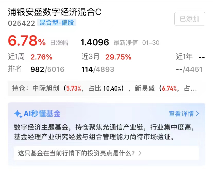 纯血CPO赛道的扛把子,浦银安盛数字经济今日逆市上涨6.78%,含光量拉满,长期看好科技核心资产$浦银安盛数字经济混合C$ #CPO逆势爆发 上车吗?#