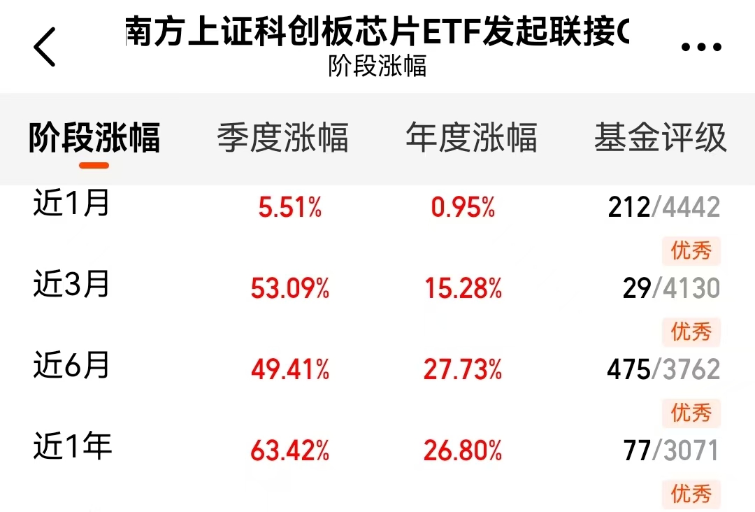 看看这走势,$南方上证科创板芯片ETF发起联接C$(021608)近三个月53%的涨幅,近一年63%的涨幅,双双排在同类第一!这背后是实实在在的需求在推动。现在各种各样的智能设备、新技术应用,哪一样能离得开更先进的芯片?相关的产业需求非常旺盛。这个基金跟踪的指数,就是投资于这个方向,它近期的强劲表现和排名,说明确实有效地把握住了这波机会。#CPO、PCB大反攻!行情空间有多大?#