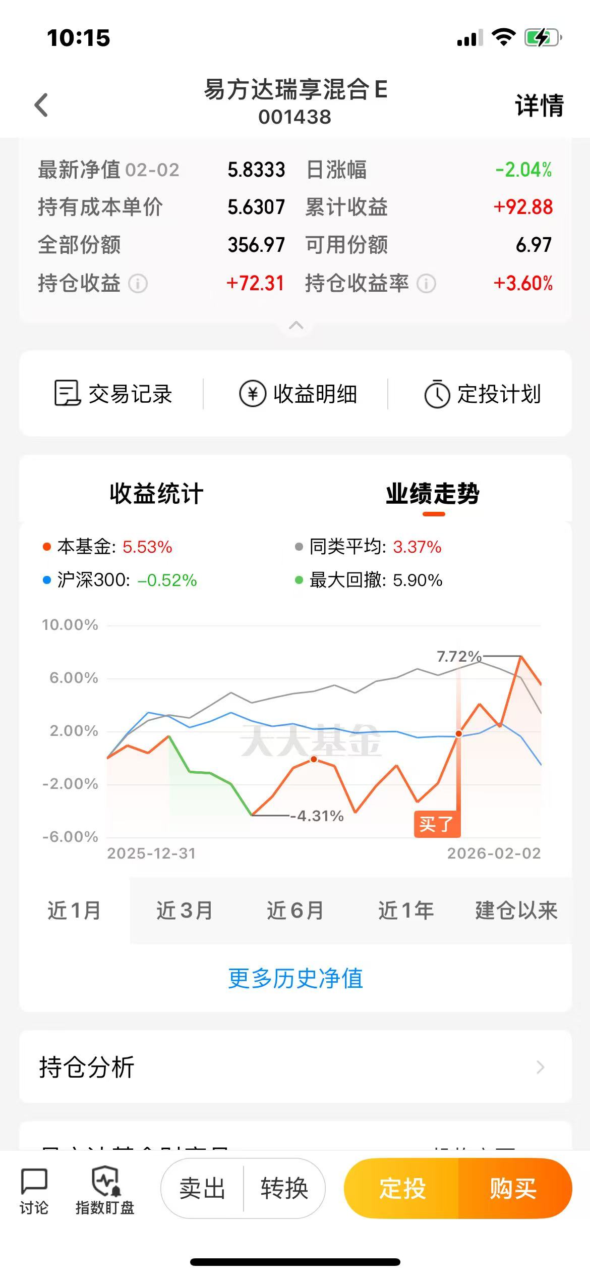 还好我也是在车上了$易方达瑞享混合E(OTCFUND|001438)$真不错,每次CPO行情启动,这支基金就大涨!