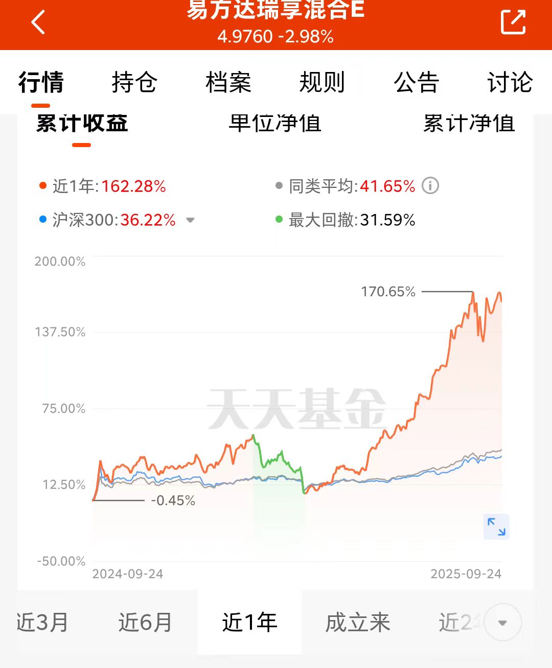 之前火热的CPO赛道,最近行情又启动啦,$易方达瑞享混合E(OTCFUND|001438)$的基金经理就很有前瞻性眼光,提前就布局了呢,所以涨幅在过往行情中都持续跑赢同类,成立以来的业绩+381%,过往调仓很坚定、效果很不错,相信经理的全市场配置,安心看长期。