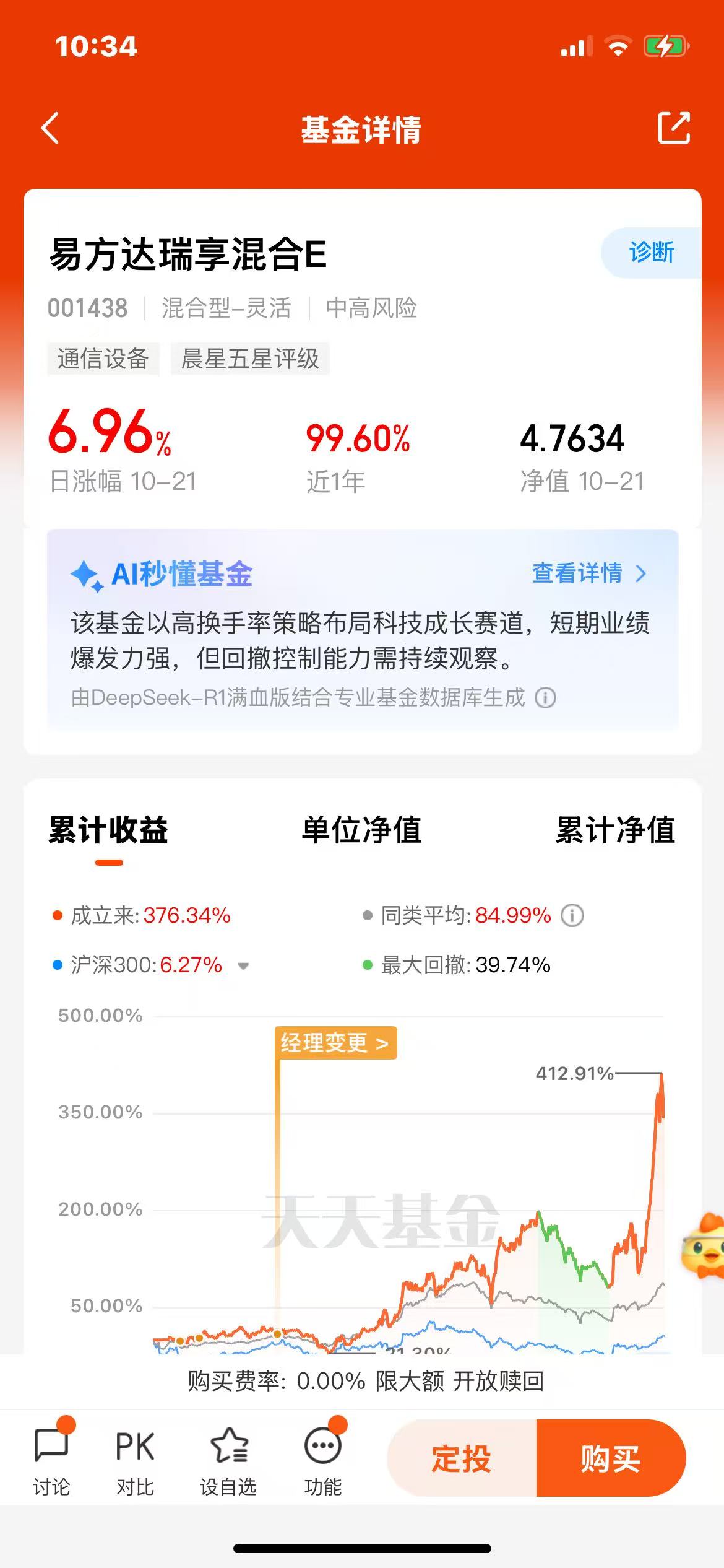 这次也是很好的验证了牛市中的每次下跌都是机会,我发现这支基金是真的强,基金经理前瞻能力突出,成立以来10年抓住每次的成长机会,业绩优于同类;成立上涨超400%,真是宝藏基!