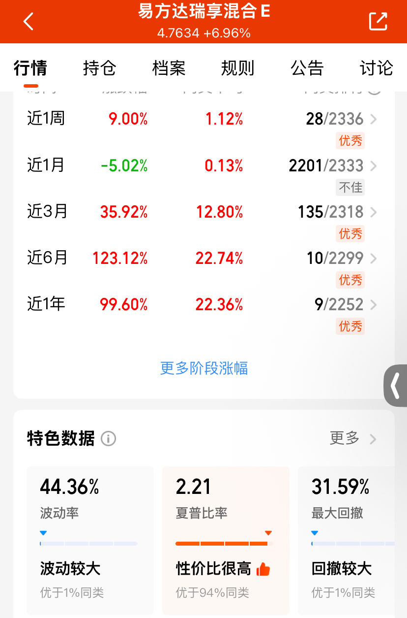 今天大盘走势偏震荡,目前三大指数小幅收跌,不过昨天的$易方达瑞享混合E(OTCFUND|001438)$收涨+6.96%,涨幅靠前优于同类基,近半年涨幅123%,随着CPO再度开启反弹,它的爆发力实属强悍呢!$永赢科技智选混合发起A(OTCFUND|022364)$#高盛看多A股:慢牛正形成 还有约30%上涨空间##黄金创12年来最大单日跌幅!什么信号#