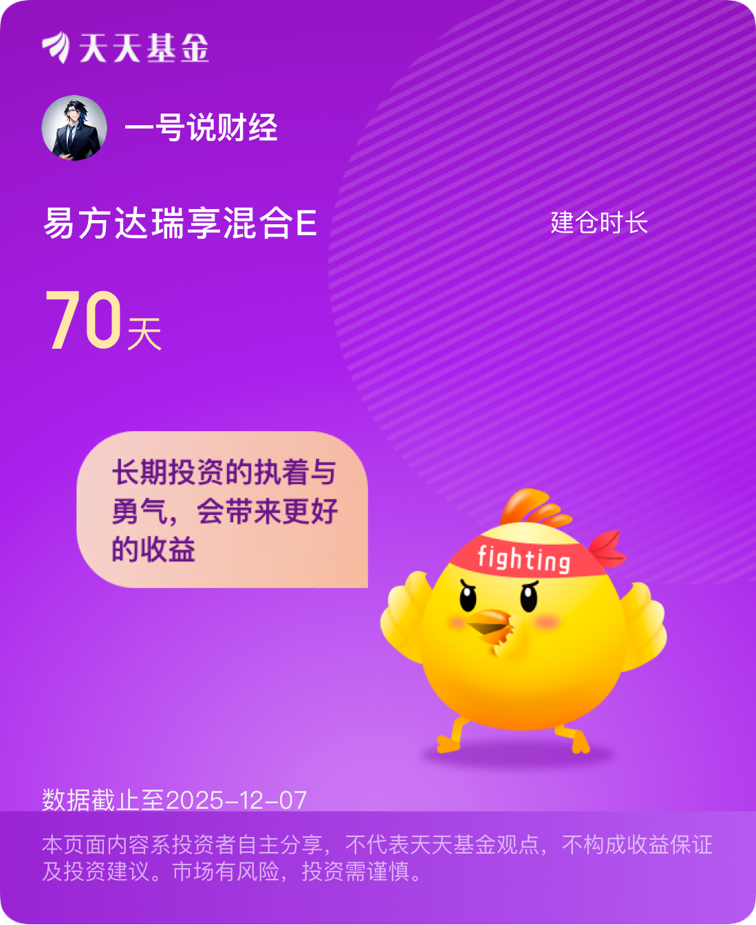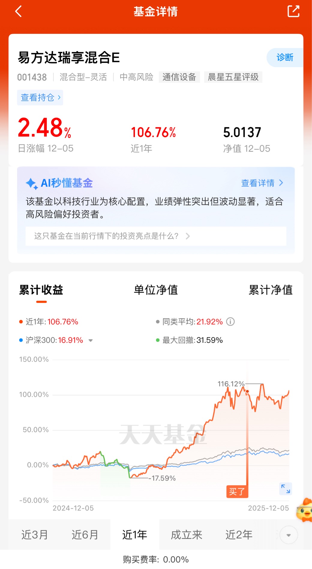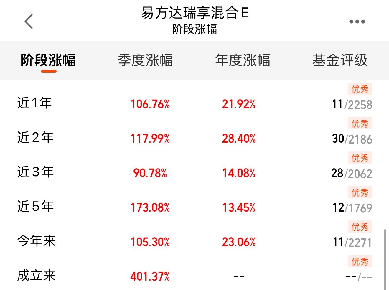 在此行情下,$易方达瑞享混合E$ 展现优异爆发力,近期涨幅显著超越多数同类产品。