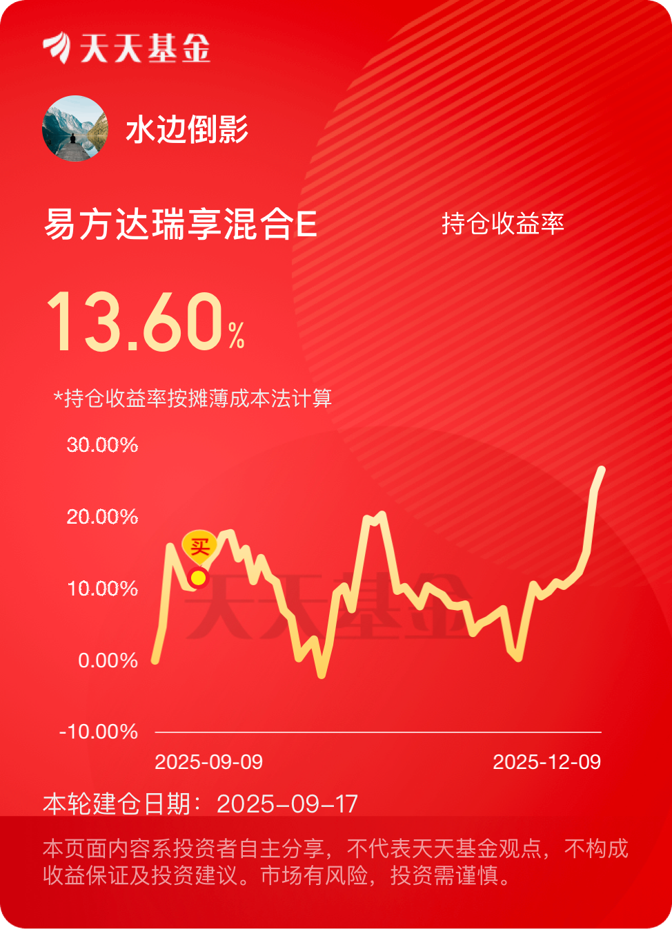 今日市场震荡,科技主线里就CPO涨得猛。$易方达瑞享混合E$ 是我配置科技的核心:成立涨超400%业绩亮眼,经理10年成长投资经验,能精准捕捉赛道机会。它持仓分散又聚焦龙头,既能抗波动又能跟涨势,不用自己折腾择时选股,长期持有就能跟上科技牛市的红利。
