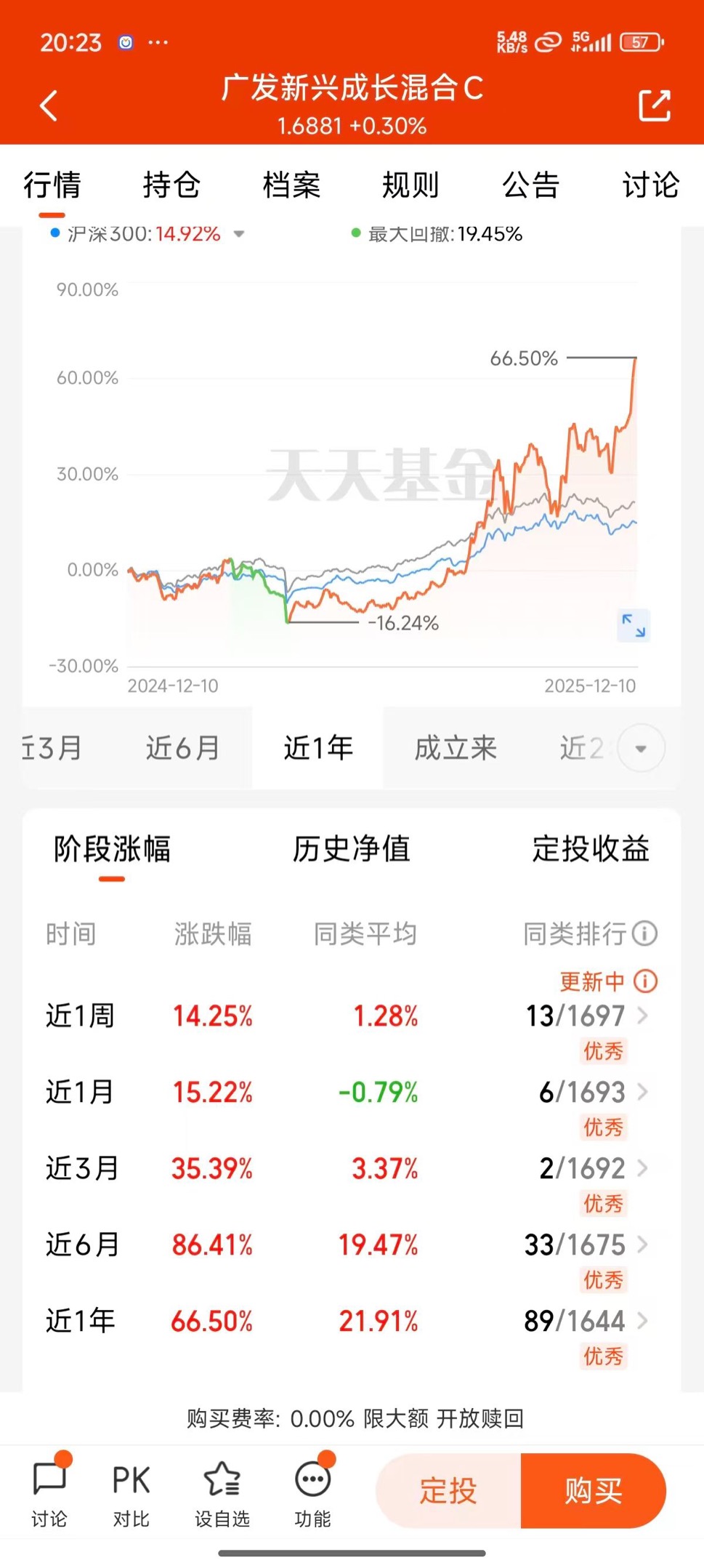 确认了,广发新兴成长混合C就是目前CPO里锐度最高的品种之一。今天强势反弹攻,同